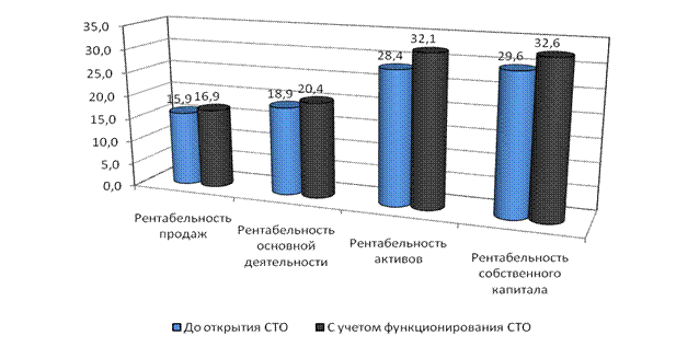 Эффективность внедрения новой техники на предприятии складывается из показателей полученной прибыли и уровнем рентабельности продукции, основной деятельности. Чем больше величина прибыли и выше уровень рентабельности, тем эффективнее функционирует предприятие, тем устойчивее его финансовое состояние. Экономическая эффективность – это экономический эффект, приходящийся на один рубль капитальных вложений, обеспечивших этот эффект. Экономический эффект – это результат осуществления инвестиций (капитальных вложений) – прирост прибыли. [47] Для того чтобы оценить экономическую эффективность проведенных мероприятий, составим прогнозные финансовые результаты фирмы с учетом функционирования СТО и сравним его с результатами деятельности предприятия до его открытия (таблица 3.9).