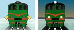рис. 7.1 а Голова поезда при движении по неправильному пути обозначается днем и ночью - красным огнем фонаря с левой стороны, с правой стороны - прозрачно-белым огнем фонаря (рис. 7.1 б).