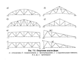 11. Ферма - система стержней (обычно прямолинейных), соединенных между собой в узлах и образующих геометрически неизменяемую конструкцию. Классификация: 1.По статической схеме фермы бывают: балочные (разрезные, неразрезные, консольные), арочные, рамные и вантовые. 2. В зависимости от очертания поясов: сегментные, полигональные, трапецеидальные, с параллельными поясами и треугольные. 3. Системы решетки. Выбор типа решетки зависит от схемы приложения нагрузок, очертания поясов и конструктивных требований. Бывает: треугольная, раскосная, шпренгельная, крестовая, ромбическая, полураскосная, в фермах с поясами из тавров можно применить перекрестную решетку из одиночных уголков с крепление раскосов непосредственно к стенке тавра решетки. 4. ПО способу соединения элементов в узлах на сварные, клепанные и болтовые. 5. По величине максимальных усилий условно различают легкие фермы с сечение элементов из простых прокатных или гнутых профилей (при условии в стержнях N≤ 3000кН) и тяжелые фермы с элементами составного сечения (N≥ 3000кН). Компоновка ферм. Выбор статической схемы и очертания фермы. Первым этапом проектирования конструкции является их компоновка. На первой стадии выбирается статическая схема, очертание ферм, назначить вид решетки и определить генеральные размеры. Компоновка конструкции в решающей степени определяется их экономичностью. Рациональное конструктивное решение должно быть экономичным по затрате металла, просто в изготовлении, транспортировке и монтаже, быть надежным и долговечным. Выбор очертания ферм является первым этапом их проектирования. Очертание ферм в первую очередь зависит от назначения сооружения. Оно должно отвечать_принятой_конструкции_сопряжений_с_примыкающими_элементами._Очертания ферм должны соответствовать их статической схеме и виду нагрузок, определяющих эпюру изгибаемых моментов. Для ферм покрытий необходимо учитывать материал кровли и требуемый уклон для обеспечения водоотвода, тип узла сопряжения с колоннами (жесткий или шарнирный) и другие технологические требования. От системы решетки зависят вес фермы, трудоемкость ее изготовления, внешний вид. Решетка должна соответствовать схеме приложения нагрузок, поскольку нагрузки во избежание местного изгиба пояса передаются, как правило, на ферму в узлах. Статический расчет ферм заключается в определении реакций в ее опорах и нахождении усилий в ее стержнях. Для решения статически определимых ферм достаточно только уравнений равновесия. Составив для каждого узла по два уравнения равновесия проекций всех сил на вертикальную и горизонтальную оси, найдем усилия во всех стержнях фермы и реакции опор- метода конечных элементов. При расчете ферм с небольшим количеством стержней применяют способ вырезания узлов и способ сечений. Способ вырезания заключается в мысленном вырезании узла фермы с заменой действия на него стержней соответствующими усилиями. Способ сечений состоит в мысленном рассечении фермы на две части и рассмотрении равновесия одной из них. При этом действие отбрасываемой части на рассматриваемую должно быть заменено усилиями в стержнях ферм. Если провести сечение таким образом, чтобы оно проходило через три стержня, то можно составить уравнения равновесия для рассматриваемой части фермы таким образом, чтобы найти ус