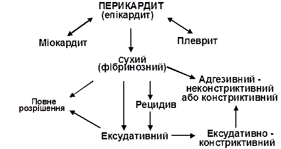 Рис. 20. Взаємовідношення різних клінічних варіантів перикардита (адаптовано за К.М.Амосовою, 1997).