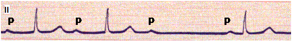 Тахікардії з синусового вузла. Синусова тахікардія є відповіддю на фізіологічний стрес, фізичне навантаження, гіпертермію, інфекційний процес, анемію, патологічно підвищений симпатичний тонус, тиреотоксикоз, на медикаменти і токсичні речовини (кофеїн, амінофіллін і інші, алкоголь), на зменшення ударного об’єму серця при серцевій недостатності, інфаркті міокарда тощо. Частота серцевих скорочень складає від 90 до 150 ударів за хвилину. Масаж каротидного синуса зменшує частоту серцевих скорочень. На ЕКГ виразно видно періоди “розігріву” і “охолодження”, морфологія зубця Р однакова при тахікардії і нормальній частоті. Синусова тахікардія за механізмом re-entry (синусно-передсердна тахікардія) має раптовий початок і кінець. Пароксизми перебігають з маловираженою симптоматикою, дуже коротко тривалі. Буває при синдромі слабості синусового вузла (СССВ) при формі тахі-брадікардії. Передсердна тахікардія виникає в результаті патологічного автоматизму або передсердного ре-ентрі. У першому випадку вона виникає при патології серця і легень, має період “розігріву” і “охолодження”, морфологія зубця Р залежить від місця походження тахікардії. Передсердна тахікардія за механізмом re-entry часто пов’язана з органічним захворюванням серця. Частота пароксизму 140-240 ударів за хвилину. Морфологія зубця Р відрізняється від зубця Р при синусовому ритмі. Інтервал PR коротший за цей інтервал при інших формах передсердної тахікардії. Відрізняється від передсердної тахікардії з підвищеним автоматизмом тим, що викликається передсердною екстрасистолою, не має періоду “розігріву” і може бути припинена за допомогою черезстравохідної стимуляції з частотою стимула на 10 ударів/хвилину більшою за тахікардію. Передсердна тахікардія з атріовентрикулярним блоком виникає у хворих на ІХС, легеневе серце, може бути результатом інтоксикації дигіталісом. На ЕКГ частота серцевих скорочень 120-200 уд./хв. та блокада Мобітц 2: 1. (див. розділ “Порушення провідності”).