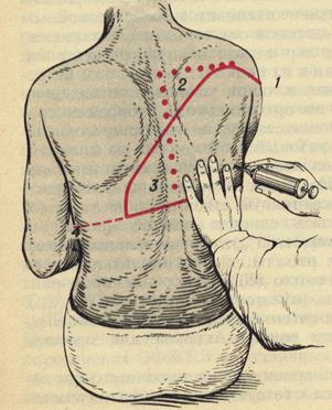 Ексудативний плеврит. Ексудативний, або ж випітний плеврит має велике клінічне значення, він характеризується різноманітним, часто важким перебігом і є різного походження. Ексудат (випіт) може бути серозним, гнійним, геморагічним, гнильним. Характер ексудату має суттєве значення як щодо важкості захворювання, так і, в певній мірі, щодо етіологічного чинника. Наприклад, геморагічний ексудат спостерігається при раку легень з дисемінацією процесу в плевру. Він може бути також при туберкульозі легень, інфаркті легень. Серозний плеврит спостерігається при туберкульозі, ревматизмі, а іноді як пара- або метапневмонічний плеврит. Різноманітне походження має гнійний плеврит. Серозний або серозно-фібринозний плеврит частіше є туберкульозного походження. Розвивається у зв’язку з ураженням бронхолегеневих лімфатичних вузлів та вузлів межистіння, а також при вогнищевих змінах в легенях. Тепер виділяють три основні механізми розвитку ексудативного плевриту: перифокальне запалення, алергічний процес і туберкульозне ураження плеври. Патоморфологія. При туберкульозному плевриті виділяють шість варіантів патоморфологічних змін в парієтальній плеврі: · епітеліоїдно-гігантоклітинні горбики з казеозним (сирчастим) некрозом; · епітеліоїдно-гігантоклітинні горбики без казеозу; · лімфоїдно-епітеліоїдно-клітинні горбики; · вогнищева або дифузна лімфоїдно-клітинна інфільтрація; · фіброз плеври; · неспецифічна запальна реакція (гостре гнійне запалення). Зазвичай від моменту первинної фіксації збудника у плевральних листках до клінічної картини ексудативного плевриту минає досить тривалий період від декількох тижнів до декількох місяців. Спочатку спостерігається специфічне запалення листків плеври з формуванням горбиків з клітинами Пирогова-Лангханса і казеозу. На 4- ому місяці настає стабілізація туберкульозного процесу. В біоптатах зростає частота фіброзних змін. Шварти можуть бути масивними, в зв’язку з чим виникають поширені злуки з розвитком облітерації плевральної порожнини. Клініка. У розвитку ексудативного плевриту розрізняють три фази: нагромадження ексудату, стабілізації його і розсмоктування, що відбуваються упродовж 1-1, 5 місяців. У осіб похилого віку і у ослаблених хворих ексудат розсмоктується дуже повільно. Внаслідок виникнення злук (злуковий процес) може розвинутись осумкований плеврит, який розсмоктується дуже повільно, а часом піддається нагноєнню. Ексудативний плеврит може розвиватись поступово або ж гостро. При гострому розвитку швидко підвищується температура тіла (39-40˚ С), деколи з дрижаками. З’являється біль у відповідній половині грудей, особливо при диханні, пітливість, виражена слабість, кашель (сухий, болючий), задишка (30-40 за 1 хв.). Уражена половина грудної клітки відстає при диханні. При перкусії легень визначається тупість, верхня межа якої має характерну опуклість, починаючи від хребта вона піднімається і досягає найвищої точки між лопатковою і задньою пахвинною лініями. Допереду вона знижується в напрямку до передньої пахвинної і парастернальної ліній (лінія Еліс-Дамуазо-Соколова). Між хребтом і висхідною межею тупості виявляється зона нерізкого притуплення з тимпанічним відтінком (трикутник Гарлянда), а на здоровій стороні вздовж хребта знаходять ділянку тупого звуку (трикутник Раухфус