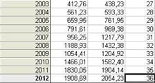Для начала представим в виде таблицы исходные данные по показателям объемов экспорта и импорта Китая за период с 1977 по 2012г. Таблица 1. Показатели объемов экспорта и импорта Китая за период с 1977 по 2012 г., млрд $
