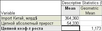 Таблица 5. Средние показатели ряда изменения объема импорта Китая за период с 1977 по 2012 г