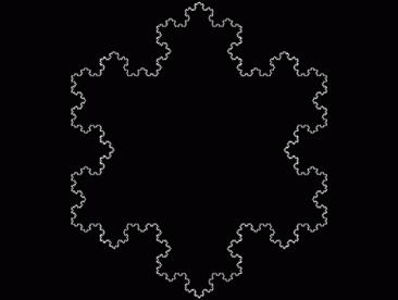 Из этих геометрических фракталов очень интересным и довольно знаменитым является – снежинка Коха. Строится она на основе равностороннего треугольника. Каждая линия которого заменяется на 4 линии каждая длинной в 1/3 исходной. Таким образом, с каждой итерацией длинна кривой увеличивается на треть. И если мы сделаем бесконечное число итераций – получим фрактал – снежинку Коха бесконечной длинны. Получается, что наша бесконечная кривая покрывает ограниченную площадь. Размерность снежинки Коха (при увеличении снежинки в 3 раза ее длина возрастает в 4 раза) D=log(4)/log(3)=1.2619... Для построения геометрических фракталов хорошо приспособлены так называемые L–Systems. Суть этих систем состоит в том, что имеется определенных набор символов системы, каждый из которых обозначает определенное действие и набор правил преобразования символов.