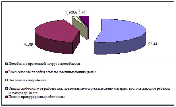 Рисунок 2.3 – Структура расходов за счет средств Фонда социальной защиты населения ОАО «ГОМЕЛЬХИМТОРГ» за 2010 год Источник: Собственная разработка. Рисунок составлен по данным Приложения Р.