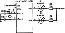 На рис. 1 изображена простая схема с двумя светодиодами.