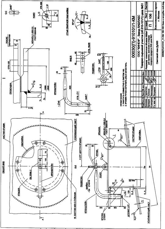 В дипломном проекте необходимо разработать технологию приварки люка к стенке цилиндрического резервуара. На рис.2, 3 представлены чертежи люка приваренного к стенке резервуара.