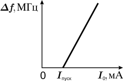 Перестройка частоты может осуществляться путём изменения реактивных параметров контура автогенератора (см. рисунок 14) за счёт изменения тока питания диода I 0. При изменении тока питания диода I 0 частотная модуляция проявляется как следствие зависимости реактивного сопротивления диода от тока питания X д (I 0). Модуляционная характеристика (зависимость девиации частоты Δ f от I 0) близка в этом случае к линейной.для частот модуляции, не превышающих нескольких сотен мегагерц, а крутизна её зависит от параметров диода и добротности контура генератора. Обычно для генераторов сантиметрового диапазона крутизна характеристики составляет несколько мегагерц на миллиампер.