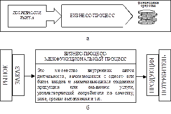 Рис. 7.4 Бизнес-процесс [32, 35]: а – с точки зрения получаемого эффекта; б – с функциональной точки зрения.
