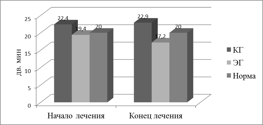 Для того, чтобы оценить преимущество усовершенствованной нами методики лечебной гимнастики, с включением в основную часть занятия фитбол-гимнастики в сочетании с тренировочной работой на тренажере «Беговая дорожка полупрофессиональная WNQ F1-7000F», для пациентов с вегето-сосудистой дистонией по гипертоническому типу в тренирующем периоде, следует провести сравнительный анализ динамики восстановления функциональных возможностей пациентов контрольной и экспериментальной групп.