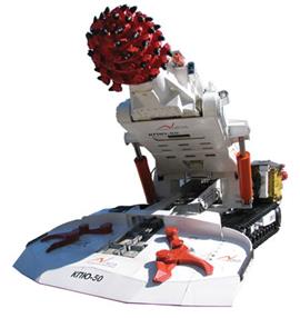 1) Крепи механизированные: Широкий модельный ряд крепей механизированных с различной несущей способностью для тонких пластов, в том числе в струговом и комбайновом вариантах, для пластов средней и большой мощности, а также крепи сопряжения. Секции крепей оснащаются как жесткими цельными перекрытиями, так и активными, управляемыми консолями, в том числе с устройствами, обеспечивающими необходимое поддержание кровли призабойного пространства, что позволяет вести эксплуатацию в лавах, имеющих неустойчивую кровлю с возможным разрушением забоя (клеважа). Основания секций – подвижный, либо жесткий катамаран, оснащаемый механизмами корректировки в вертикальной и горизонтальной плоскостях. Крепи оснащаются механизмами якорения, корректировки положения секций, корректировки трассы и удержания конвейера. В крепях применяются самые современные системы управления, поставляемые ведущими производителями, как для электрогидравлического режима управления, так и для ручного – пилотного. 2) Проходческие и очистные комбайны Комбайн проходческий КПЮ-50 предназначен для механизированного разрушения забоя и погрузки горной массы при проведении горизонтальных и наклонных горных выработок, производительностью от 0, 2 до 2, 0 м3/мин. Применение радиоуправления с носимого радиопульта, а также с возможностью работы системы управления в ручном гидравлическом режиме (при необходимости). Наличие резервного носимого пульта дистанционного управления (ПДУК).