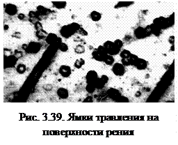 Химический потенциал на поверхности кристалла в точке выхода дислокации отличается от химического потенциала идеальной поверхности. Поэтому скорость травления в этих точках также отличается; обычно в месте выхода дислокаций она больше, вследствие чего там образуется острая ямка. Если к кристаллу приложить внешнее напряжение, под действием которого дислокация перейдет в соседнюю точку, а затем повторно протравить, то острая ямка образуется в новой точке выхода дислокации. Старая ямка перестанет расти в глубину, но будет расти в стороны, в результате чего превратится в большую плоскодонную ямку (рис. 3.39). Таким образом, метод позволяет наблюдать за перемещениями отдельных дислокаций. Простота и дешевизна сделали этот метод очень популярным.
