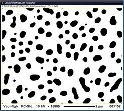 В робочому меню за допомогою функції Set Measurements вибираємо необхідні нам дані, а саме площу нашого зображення. Далі у вкладці Analyze particles вибираємо необхідні параметри(рис.2.7): • у полі Size вказуємо межі розмірів частинок; • поле Circularity виділяє для роботи об’єкти з певним рівнем еліптичності; • вкладка Show дозволяє вибрати як відображати нове зображення (використовувалась опція Маsks); • Еxclude on Edges дозволяє виключити з обчислень об’єкти, що доторкаються до країв зображення, або виходять за межі.