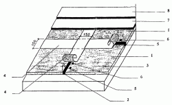 | 9. Замоченная во время монтажа теплоизоляция должна быть удалена и заменена сухой. 10. В период организации выполнения работы особое условие состоит в том, что теплоизоляционные работы необходимо проводить в сухую погоду, чтобы не допустить замокания теплоизоляционного материала. Качество теплоизоляции должно быть отмечено в актах на скрытые работы. Перед устройством изоляционных слоев основание должно быть сухим, обеспыленным, на нем не допускаются уступы, борозды и другие неровности. Требования к ровности основания приведены в Таблице 2. В новом покрытии или при его реконструкции (при капитальном ремонте с заменой теплоизоляции) кровельный ковер выполняют из двух слоев наплавляемого рулонного материала, причем для верхнего слоя применяют материалы с крупнозернистой посыпкой (Биполикрин -К). На эксплуатируемых покрытиях (крышах-террасах) кровельный ковер выполняют из двух слоев наплавляемого рулонного материала, имеющих мелкозернистую (тальковую) посыпку либо полиэтиленовую пленку (Биполикрин -Н), либо производится укладка бетонных плит по всему покрытию или в виде дорожек по песчаному основанию. 11. Основанием под кровлю могут служить: ровные поверхности железобетонных несущих плит либо теплоизоляции без устройства по ним выравнивающих стяжек (затирок); выравнивающая стяжка из цементно-песчаного раствора или асфальтобетона, которую назначают в соответствии с требованиями. 12. В местах примыкания кровель к стенам, шахтам и другим конструктивным элементам должны быть предусмотрены переходные наклонные бортики (под углом 45°), высотой не менее 100 мм из легкого бетона или цементно-песчаного раствора. Стены из кирпича или блоков в этих местах должны быть оштукатурены цементно-песчаным раствором марки 50. 13. В стяжках выполняют температурно-усадочные швы шириной 5 мм, разделяющие стяжку из цементно-песчаного раствора на участки не более 6× 6 м, а из песчаного асфальтобетона - не более 4× 4 м. Швы должны располагаться над швами несущих плит (в холодных покрытиях) и над температурно-усадочными швами в монолитной теплоизоляции и заполняться герметиком (Таблица 3). По ним укладывают полоски шириной 150-200 мм из Биполикрин с крупнозернистой посыпкой и приклеивают их точечно с одной стороны шва. 14. При устройстве выравнивающей стяжки из цементно-песчаного раствора, укладку последнего производят полосами шириной не более 3 м ограниченными рейками, которые служат маяками. Раствор подают к месту укладки по трубопроводам при помощи растворонасосов или в емкостях на колесном ходу. | ||||||