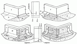 Рис. 14 Раскладка и раскрой полотнищ наплавляемого рулонного материала при устройстве кровельного ковра на поверхности внешнего угла