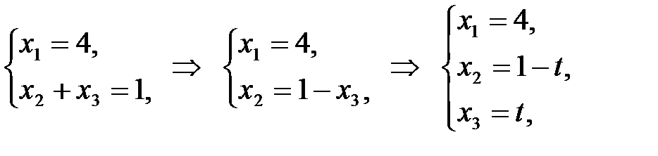 Т.к. б) т.е. система определяет прямую. Найдем общее решение системы по методу Жордана-Гаусса: