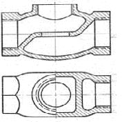 7) Изображение усадочных ребер, стяжек, проб для механических и других испытаний и технологических приливов. Усадочные ребра, стяжки (рис. 8.15), пробы (рис. 8.16) и технологические приливы изображают в масштабе детали сплошной тонкой линией красного цвета. Назначение отливаемой пробы указывают на полке линии-выноски соответствующей надписью.