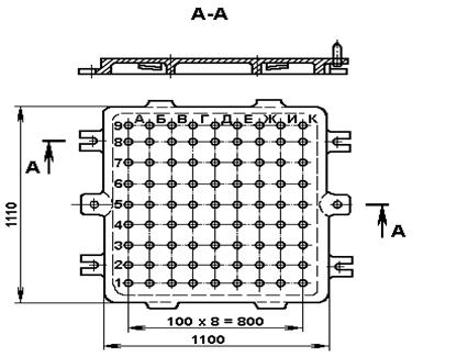 По согласованию с руководителем курсового проекта студент может выполнить один из нескольких чертежей модельно-литейной оснастки, в том числе: чертеж модельной плиты с моделью и литниковой системой, чертеж стержневого ящика, чертеж отливки, эскиз сложного стержня и др. Для закрепления модельного комплекта при формовке, для установки и крепления его к столу формовочной машины используют специальные плиты, называемые модельными (подмодельными). Они могут быть как деревянными, так и металлическими. Дополнительно к ним могут использоваться сменные деревянные или металлические вкладыши. Плиты делают односторонними и двусторонними. Для быстрой смены моделей при единичном и мелкосерийном производстве используют координатные плиты. Каждая из модельных плит предназначается для определенного типоразмера опоки. При выборе модельных плит должны учитываться тип формовочной машины и механизм уплотнения смеси. В зависимости от назначения плит прорабатываются их конструктивные элементы. Для опочной формовки применяют односторонние модельные плиты (составные или цельнолитые). Литые плиты для формовки в съемных опоках изготовляют из легких алюминиевых или магниевых сплавов. При серийном производстве деревянные или металлические модели монтируют на металлических односторонних плитах (рис. 8.17). При монтаже модель на плите фиксируют контрольными шпильками. Модель к плите крепят болтами, винтами или даже гвоздями, головки которых утапливают заподлицо с моделью. Координатные плиты могут быть литыми или сварными (рис. 8.18). Они отличаются от обычных модельных плит тем, что по всей плоскости плиты имеются базовые круглые отверстия одинакового размера, размещенные в шахматном порядке с одинаковым интервалом между осями. Эти отверстия предназначены для фиксации и крепления моделей к плите. Расстояние между осями может составлять 50, 100, 200 мм и более в зависимости от размеров модельных плит. Диаметр отверстий при расстоянии между осями до 100 мм принимают равным 12 мм; при расстоянии более 100 мм – 25 мм. Все вертикальные осевые линии на плите обозначают цифрами 1, 2, 3 и т.д., горизонтальные – буквами А, Б, В и т.д. Таким образом, каждое отверстие имеет свой шифр, например, Б6, Д4, Ж7. Деревянные модели и элементы литниковой системы для координатных плит изготовляют обычным способом. Для машинной формовки верхних и нижних полуформ используют одну и ту же координатную плиту, меняя лишь модели. К моделям делают также части литниковой системы с указанием на них шифров для размещения их на плитах.