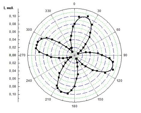 График 3. График зависимости величины фототока от ориентации анализатора. Пластинка