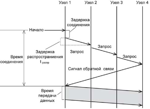 Рис. 2. Установление составного канала Техника коммутации каналов имеет свои достоинства и недостатки.