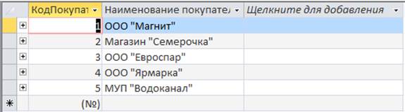 Рис4. Конструктор таблицы «Покупатели Таблица «Покупатели» на рис.5 показывает список покупателей, которые приобретают товар у торговой организации.