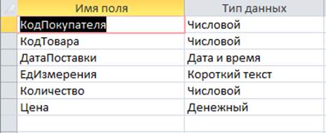 Конструктор таблицы «Поставка товара» показан на рис.6.