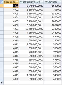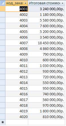 Рисунок 13 – Результат выполнения запроса «Стоимость»