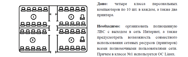 Вариант 17 Задание: необходимо спроектировать локально-вычислительную сеть двух учебных классов.