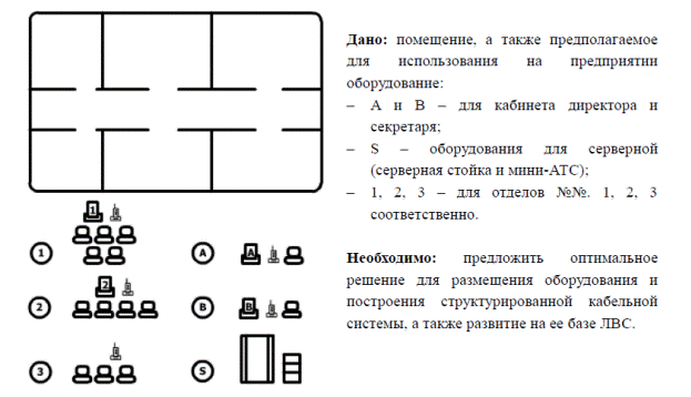 Вариант 19 Задание: необходимо спроектировать локально-вычислительную сеть небольшого предприятия.