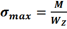 Опасные точки при данном виде сопротивления это точки наибольше удаленные от нейтральной оси при изгибе. Тогда maх напряжения опред.: