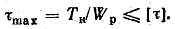 , где - предельное кас. напряжение материала, nТ – коэф. запаса,