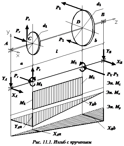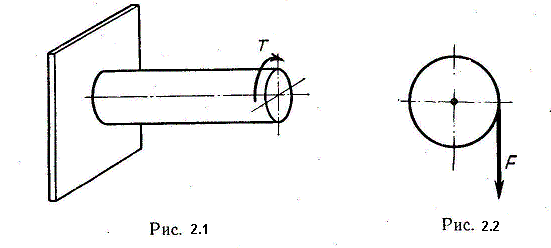 Однако и поперечная нагрузка, смещенная относительно оси стержня, вызывает крутящие моменты (рис. 2.2), но в указанномслечае в поперечных сечениях наряду с крутящими моментами возникают и другие внутренние усилия - поперечные силы и изгибающие моменты.