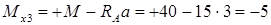 Определение поперечных сил и изгибающих моментов - сечение 3