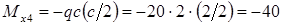 Определение поперечных сил и изгибающих моментов - сечение 4