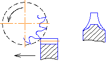 Основним профілем стандартних черв'ячних фрез є конволютний черв'як (в перерізі, перпендикулярному до напряму витка, має прямолінійний профіль). Нарізання конічних коліс Принцип нарізування конічних зубчатих коліс на зубофрезерних напівавтоматах дисковими фрезами по методу копіювання полягає в тому, що під час прорізання западини колесо знаходиться в нерухомому стані, а фреза здійснює обертання навколо своєї осі зі швидкістю різання vріз і рух повздовжньої подачі Sповз вздовж лінії дна западини. Після прорізання всієї ширини зубчатого вінця фреза повертається в початкове положення і здійснюється рух ділення – заготовка повертається на кут, рівний Але найбільше розповсюдження отримали методи обкату. Сучасні зубостругальні верстати для обробки конічних зубчатих коліс працюють двома різцями, що здійснюють зворотно-поступальні рухи. Різці закріплені на ковзанках, які встановлені на люльці. Нарізуване колесо встановлюється на оправці і закріплюється в шпинделі ділильної бабки, яку можна обернути відносно осі столу. При нарізанні зубів люльці з різцями і нарізуваному колесу передаються узгоджені рухи навколо їх осей, тобто неначе відбувається обкатка двох конічних коліс, що знаходяться в зачепленні. Стругальні різці, будучи встановленими на верстаті, своїми ріжучими кромками утворюють ніби сторони зуба колеса, що виготовляється. Конічні колеса з криволінійними зубами обробляють різцевими головками по методу обкату на спеціальних верстатах (та інші способи). Для усунення похибок, що виникають при зубонарізанні і подальшій термообробці, зубчаті колеса додатково обробляють облицювальними методами: шевінгуванням, обкаткою, притиранням і шліфуванням. Шевінгування є зрізанням тонкої стружки (завтовшки 5-15 мкм) спеціальним інструментом – шевером з бічних поверхонь зубів коліс невисокої твердості. Шевер – зубчате колесо (або черв'як) з поперечними канавками на зубах високої поверхневої твердості, твірними ріжучі кромки. В процесі шевінгування вісь шевера повернена щодо осі оброблюваного колеса (схрещування осей), що при спільному їх обертанні забезпечує ковзання профілів зубів в повздовжньому напрямі а отже, зняття стружки. Шевінгуванням можна досягти 6-7 ступеня точності і шорсткості поверхні Ra = 1, 0-2, 5мкм.