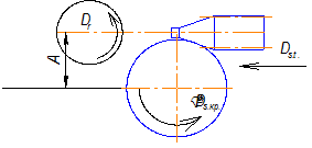 При фрезеруванні з радіальним рухом подачі DSр фрезі і заготовці передаються узгоджені обертання і радіальний рух подачі DSр фрези триває до моменту досягнення міжосьової відстані А. Ця відстань встановлюється при налагодженні і обмежується упором. При нарізуванні по методу тангенціального руху подачі основна частина припуску знімається забірним конусом фрези, а циліндрична частина виконує чистову обробку. Цей метод точніше. При нарізуванні черв'ячних коліс обома способами вісь фрези розташовують горизонтально в середній площині колеса. Переваги радіального способу в його високій продуктивності, а також у відносно не складній конструкції черв'ячної фрези і можливості нарізувань коліс на універсальних зубофрезерних верстатах, не обладнаних протяжним супортом.