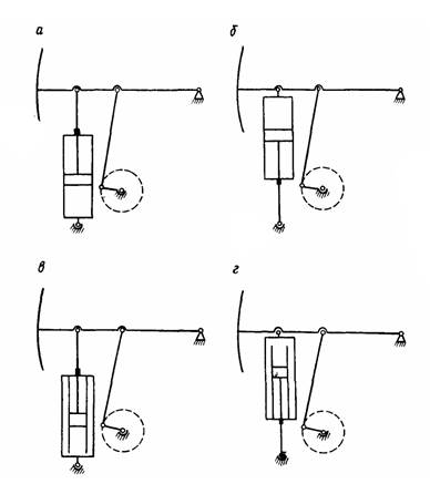 Верстати-качалки з двохплічним балансиром виконуються за кінематичною схемою, наведеною на рисунку 1.7.1. При цьому у двоплічних верстатів-качалок балансирного типу опора балансира знаходиться між голівкою балансира і точкою з’єднання балансира із шатуном. Зусилля до балансира можуть передаватися декількома способами. Найбільш часто для цього використовуються два шатуни, з'єднані з балансиром траверсою. Існують також одноплічні верстати-качалки (рисунок 1.7.2).