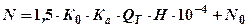 де Розрахунок за формулами Азинмашу. Потужність двигуна в кВтвизначається за середньоквадратичним значенням тангенційних сил: