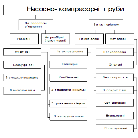 Рисунок 1.8.5 – Класифікація насосно-компресорних труб При виборі колони НКТ необхідно проводити міцнісний розрахунок. Вихідною величиною для розрахунку труб при фонтанній експлуатації свердловини є опір навантаженням, що розтягують. Гранично припустима довжина підвіски для однорозмірної колони визначається з виразу