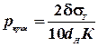 Припустимий внутрішній тиск для труб визначається за формулою Барлоу