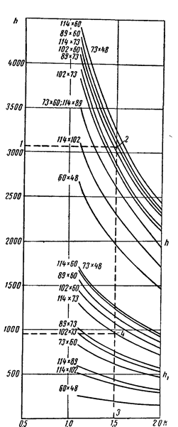 Рисунок 1.8.6 – Графік для підбору двохрозмірних колон піднімальних нерівноміцних труб зі сталі групи міцності Д