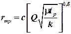 де: Радіус горизонтальної тріщини розраховується за емпіричною формулою