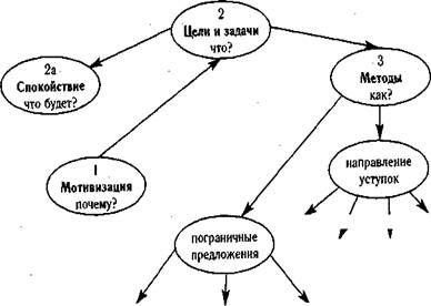 В1. Процедурная организация переговоров. Характеристика вертикальных и горизонтальных переговоров. Любые переговоры начинаются задолго до встречи, — в тот момент, когда вы определили необходимость их проведения. Сначала вы проводите мысленные переговоры с собой, пытаясь определить свои интересы, цели и задачи, а также зависимость от ресурсов или поведения того, с кем вы решаете о чем-либо договориться. Затем, возможно, вы консультируетесь со своими коллегами, стремясь найти различные подходы к решению проблемы и увидеть ситуацию со стороны. После этого вы анализируете имеющуюся у вас информацию и собираете дополнительную с тем, чтобы усилить собственные позиции и узнать о потребностях будущего партнера по переговорам. Затем собираетесь с духом (производите моральную подготовку). И только потом договариваетесь о встрече. От того, насколько хорошо пройден этот подготовительный этап, напрямую зависит исход переговоров. Подготовительный этап занимает длительное время, порой, в сложных случаях, доходящее до нескольких месяцев, и решает две большие и взаимосвязанные задачи: • Проблематизация — формулирование собственных позиций, предложений и т.д. • Переговоры о переговорах — согласование процедурных вопросов с противоположной стороной. Проблематизация Для того, чтобы определиться с собственными позициями, объективно взглянуть на ситуацию и подготовить продуманные предложения, необходимо ответить себе на 3 главных вопроса: ПОЧЕМУ? ЧТО? КАК? 1.1 Вопрос «Почему мне нужно провести переговоры?» помогает определить ваши собственные интересы. (Это вопрос мотивации) вы выявляете и конкретизируете свои потребности. Например, предприниматель собирается заключить договор о покупке нового оборудования, которое будет доставлено по железной дороге и прибудет через месяц. Ему срочно нужно подыскать новое помещение для производственного цеха. Тогда на вопрос почему? он может ответить так «Потому что я хочу сразу разместить станки в постоянном месте, чтобы потам не тратить время и силы на переезд. Потому что, если будет известен точный адрес помещения, я смогу нанять специалистов для сборки и наладки оборудования, а также начать подыскивать высококвалифицированных рабочих для работы на новых станках. Потому что я не хочу, чтобы они простаивали. Потому что рынок тесен, и конкуренты не дремлют. Потому что я хочу скорее начать окупать таможенные средства и получать прибыль. Потому что потенциальный партнер предлагает подходящие площади в удобном месте по приемлемой цене». 1.2. Вопрос «Что именно мне требуется? Что является для меня сложностью?» позволит прояснить стоящие перед вами проблемы. (Это вопрос целей и задач). Вы выявляете некоторое противоречие, которое существует и требует разрешения. Например, совершив необходимые расчеты, предприниматель может ответить на этот вопрос следующим образам: «Мне нужно телефонизированное помещение общей площадью 1000м2. Оно должно быть светлым, сухим, охраняемым, снабженным грузовыми лифтами. Обязательно должны быть подъездные пути для того, чтобы железнодорожным транспорт там отправлять продукцию будущего производства заказчику, находящемуся в другом регионе. Необходимо, чтобы в будущем была возможность расширяться (устроить рядом сухой склад). Хорошо бы, чтобы здание находилось в черте 