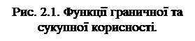 Згідно з графіком на рис. 2.1. сукупна корисність досягає максимального значення (TUmax) в точці, що відповідає одиниці блага, для якої гранична корисність дорівнює нулю (MU=0), тобто споживач досягає мети – повного насичення потреби.