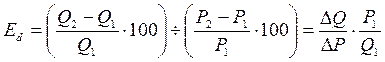 Коефіцієнт еластичності попиту за ціною показує відсоткову зміну обсягу попиту при зміні ціни товару на один відсоток: