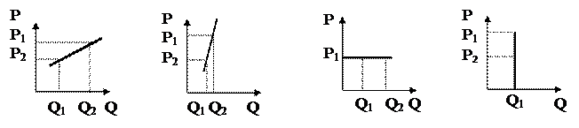 Так само можна розрахуватись лінійна або дугова еластичність. Крива пропозиції має позитивний нахил, тому ЕS завжди є додатковим, зміни цін і обсягів пропозиції відбуваються в одному напрямку. Випадки еластичності пропозиції: 1. Якщо ЕS > 1 – пропозиція еластична, тобто виробники чутливі до зміни ціни, вони мають змогу збільшити обсяги виробництва та мати вигоди від підвищення ціни на товар. 2. Якщо ЕS < 1 – пропозиція нееластична, тобто зміна цін не призводить до істотної зміни пропозиції 3. Якщо ЕS=1 – одинична еластичність пропозиції, тобто одновідсоткова зміна ціни призводить до одновідсоткової зміни обсягу пропозиції. 4. Якщо ЕS= 0 – абсолютно нееластична пропозиція, тобто обсяг пропозиції не реагує на зміни ціни. 5. Якщо