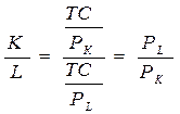 Це рівняння має відображає принцип найменших витрат. Його суть у тому, що виробництво заданого обсягу продукції з мінімальними витратами вимагає, щоб ресурси, які одночасно використовуються, мали однакову величину граничного продукту на одиницю вартості ресурсу.