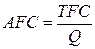 Тобто, конфігурація кривих ТС і TVC ілюструє дію закону спадної віддачі. Зв’язок між динамікою продуктивності факторів виробництва і витрат обернений: гранична продуктивність змінного фактора на низьких обсягах випуску зростає, досягає максимуму, а згодом – на вищих обсягах випуску – спадає, тоді як прирости витрат, навпаки, на низьких обсягах мають спадний характер (це показує опуклість кривих ТС і TVC вгору), а на вищих – зростаючий (опуклість кривих донизу). Аналіз витрат на одиницю продукції Середні (або питомі) витрати – це витрати в розрахунку на одиницю продукції. Розрізняють: 1. Середні постійні витрати – АFC – це кількість постійних витрат, що припадає на одиницю виробленої продукції: