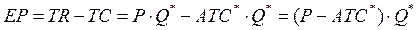 Умова прибутковостіфірми: P > ATC* Така фірм не тільки покриває усі свої витрати на фактори виробництва і отримує нормальний прибуток, але й має ще економічний прибуток.